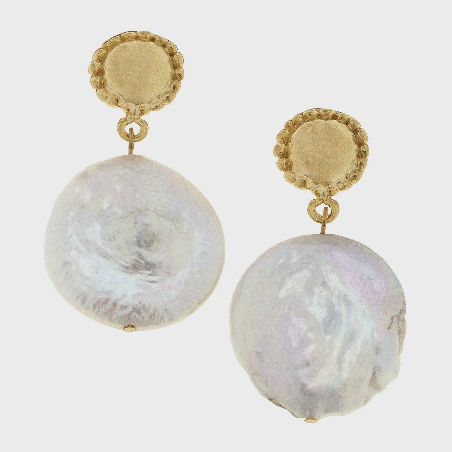 - Gold Cab w/ Genuine Freshwater Coin Pearl Earrings