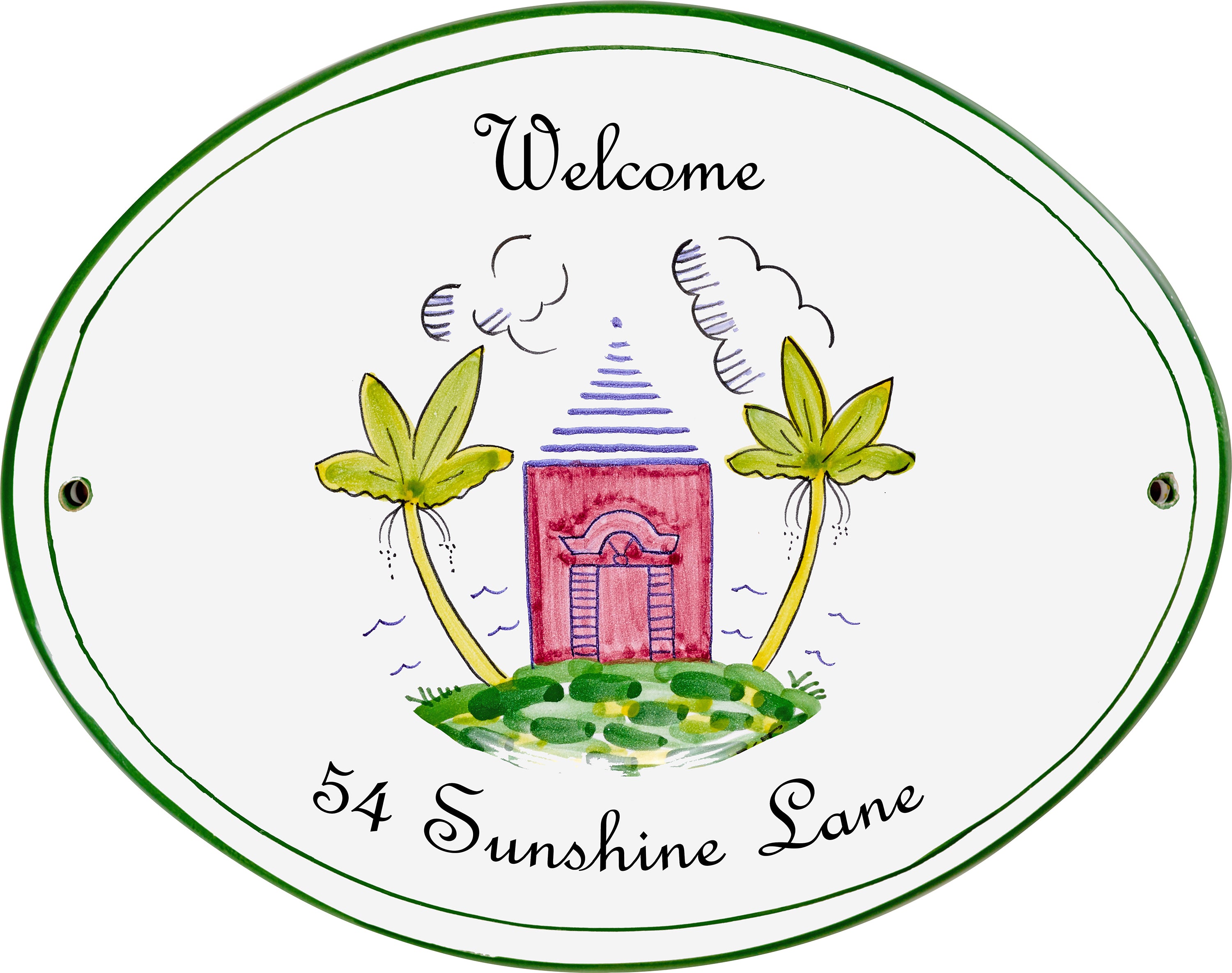 Our house signs are all hand-crafted and hand-painted in Italy and can take up to 6 months to arrive in Bermuda. If you are ordering from overseas, please note that we do not offer drop shipments. Once your house sign arrives in Bermuda you will be contacted by email and we can then arrange for it to be shipped if needed. We ship exclusively with DHL at a cost of $40 for the house signs.