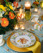 These traditionally edged dinner plates have undulating edges decorated in a whimsical fashion, all featuring different images as center pieces. Some may prefer to have a single design but others may prefer to mix and match, or perhaps to customize the center with something unique to themselves.