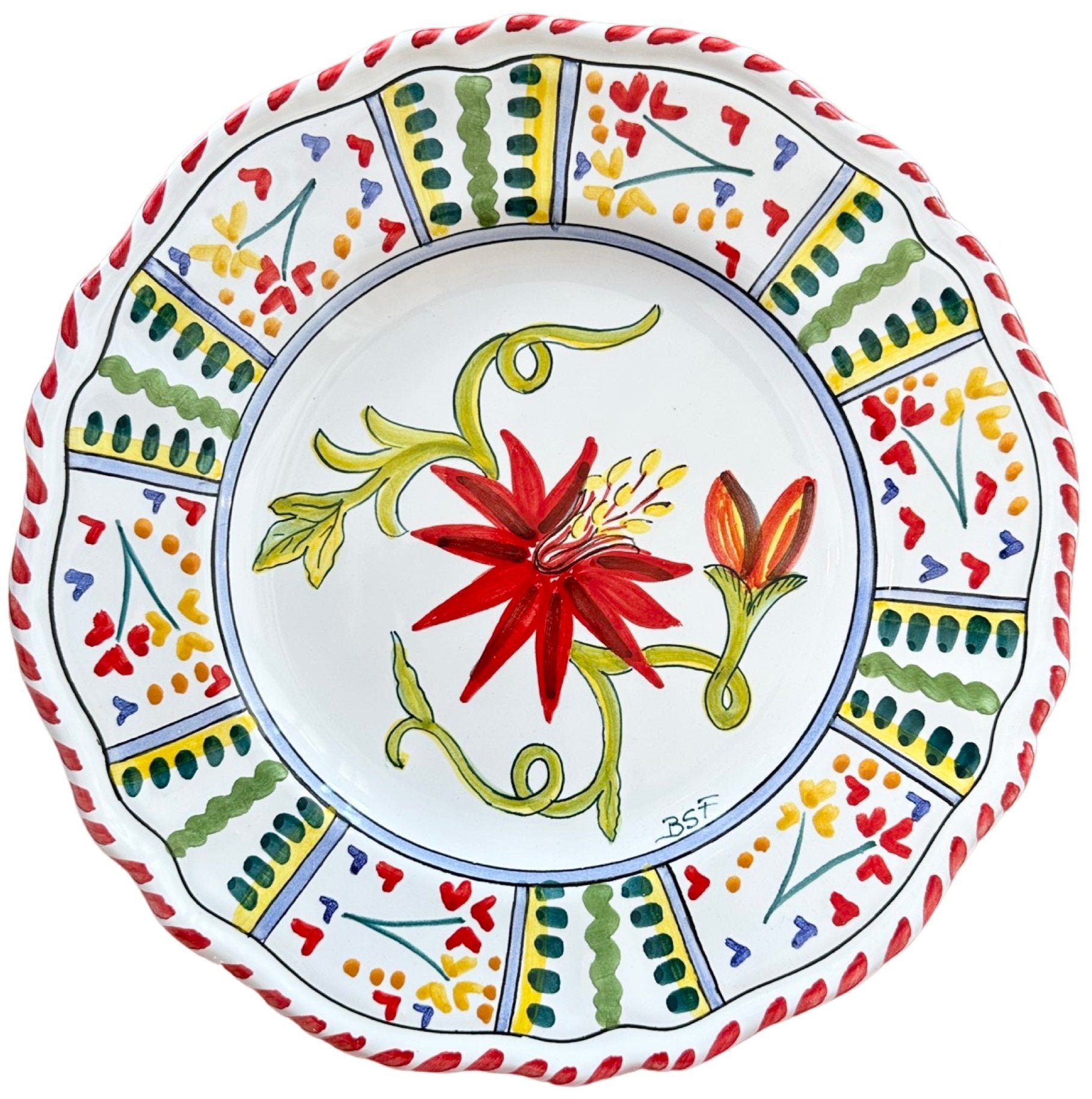 Red Passion Flower Scalloped Plate