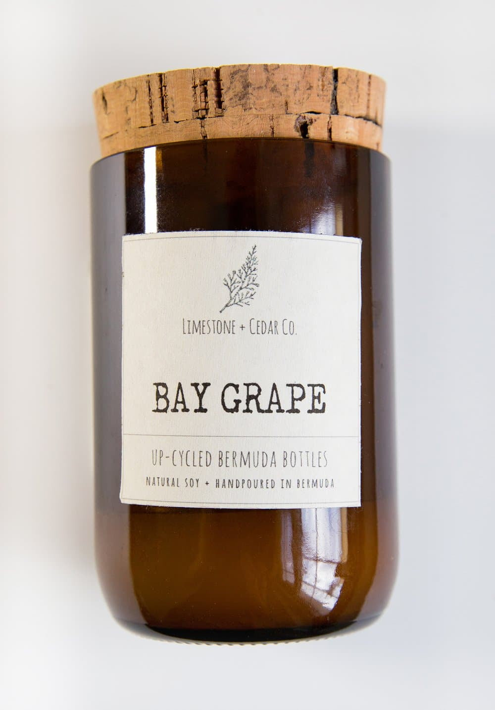 Each 9oz Limestone + Cedar Co. candle has been handcrafted from a recycled amber beer bott le using natural Soy Wax and cotton wicks. Fragrances have been carefully blended to mimic the flavours and aromas found in Bermuda. Each candle is topped with a recycled cork branded with Bermuda’s Map.