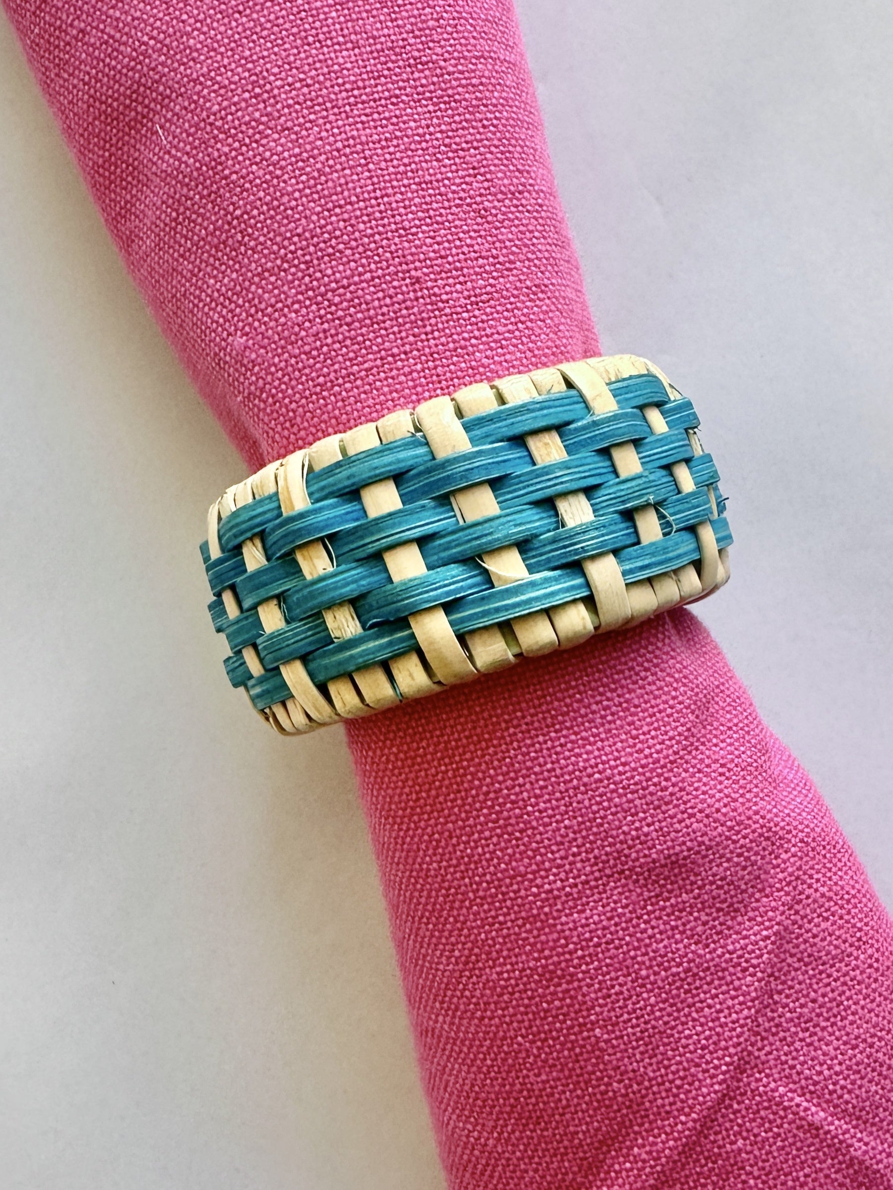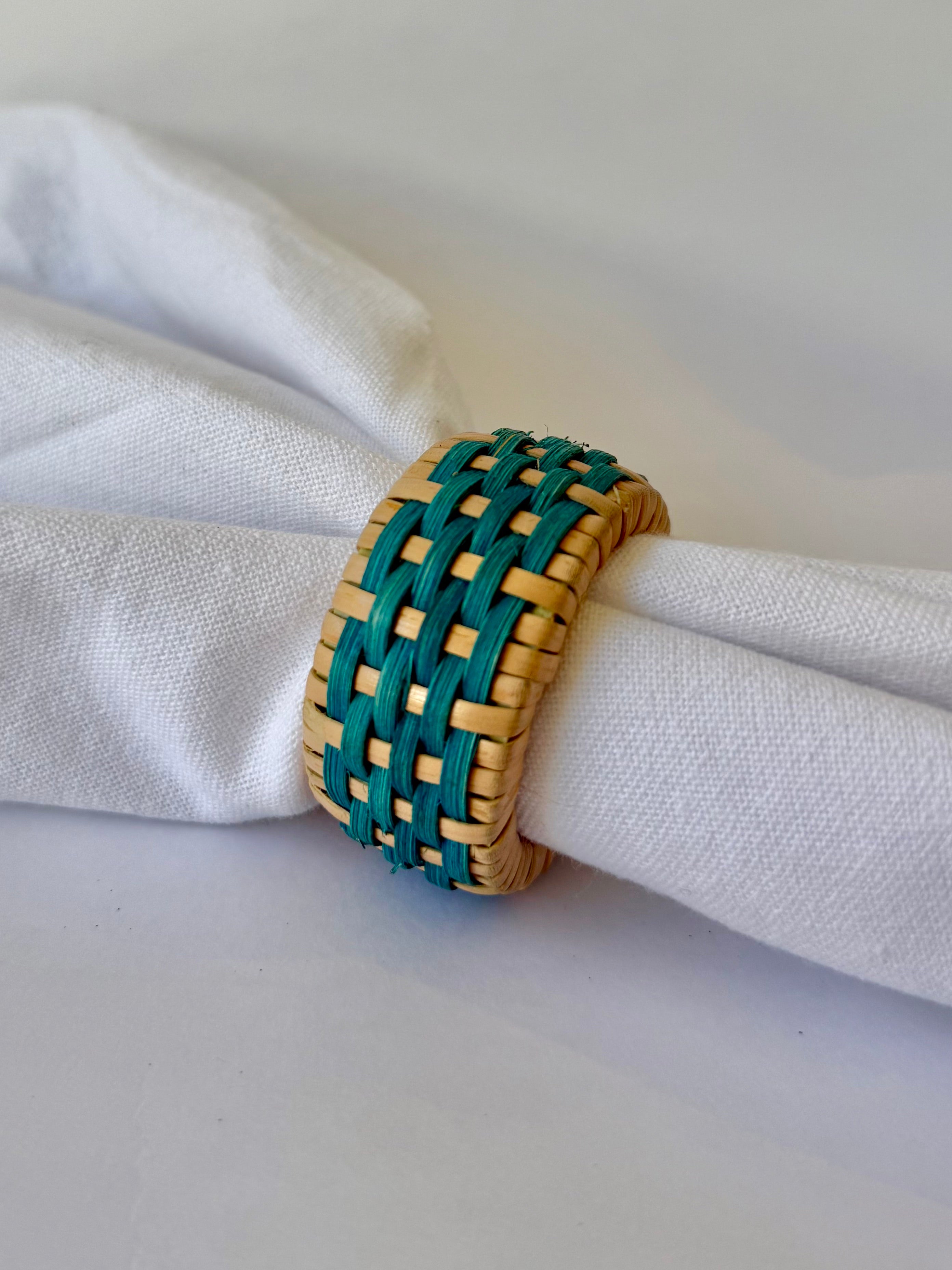Turquoise Beads Rattan Napkin Ring