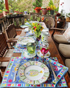 These traditionally edged dinner plates have undulating edges decorated in a whimsical fashion, all featuring different images as center pieces. Some may prefer to have a single design but others may prefer to mix and match, or perhaps to customize the center with something unique to themselves.
