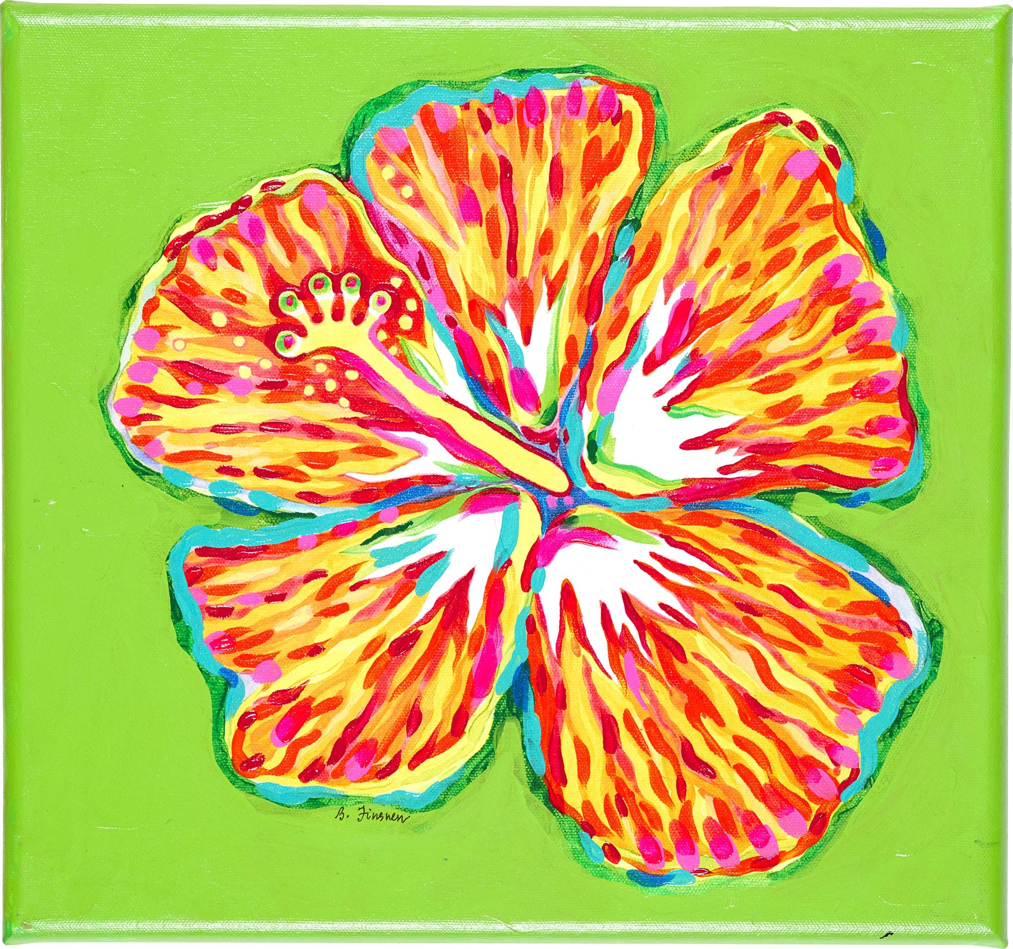 Hibiscus Print - Orange on Lime