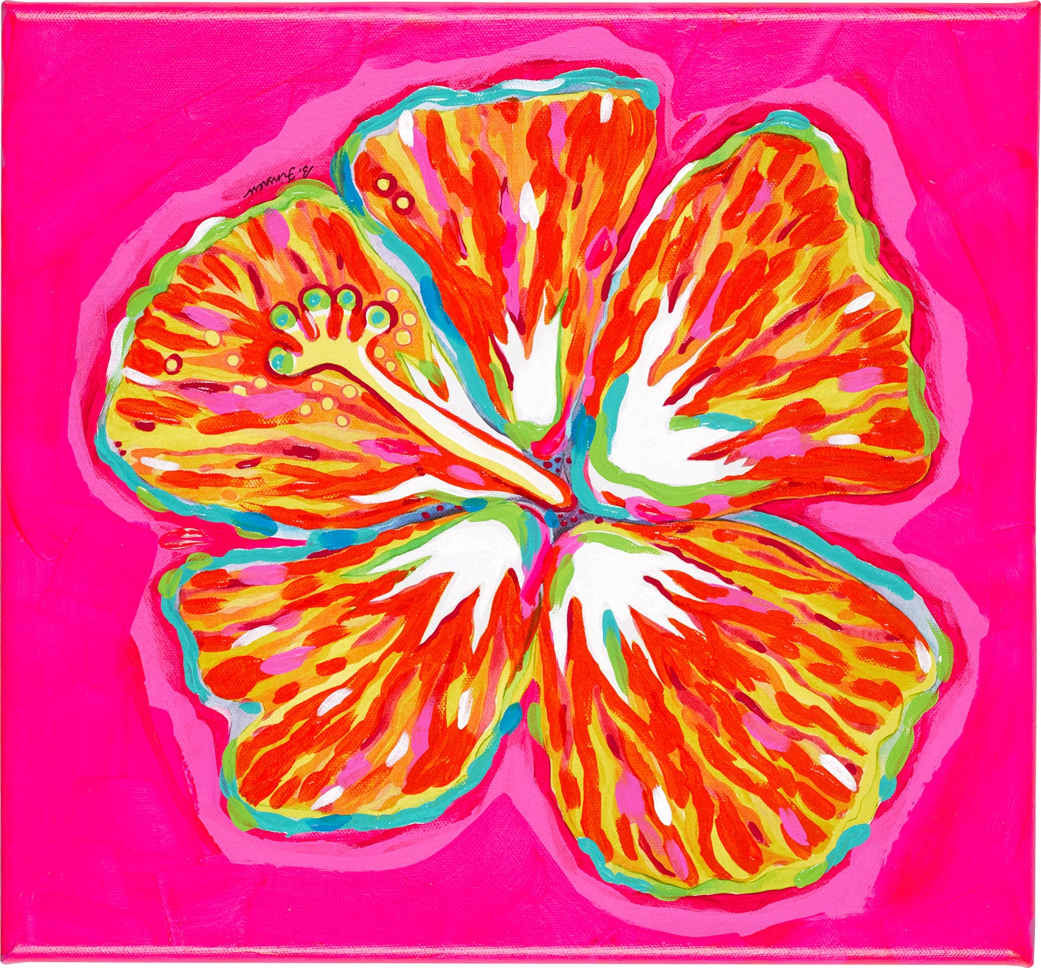 Hibiscus Print - Orange on Pink
