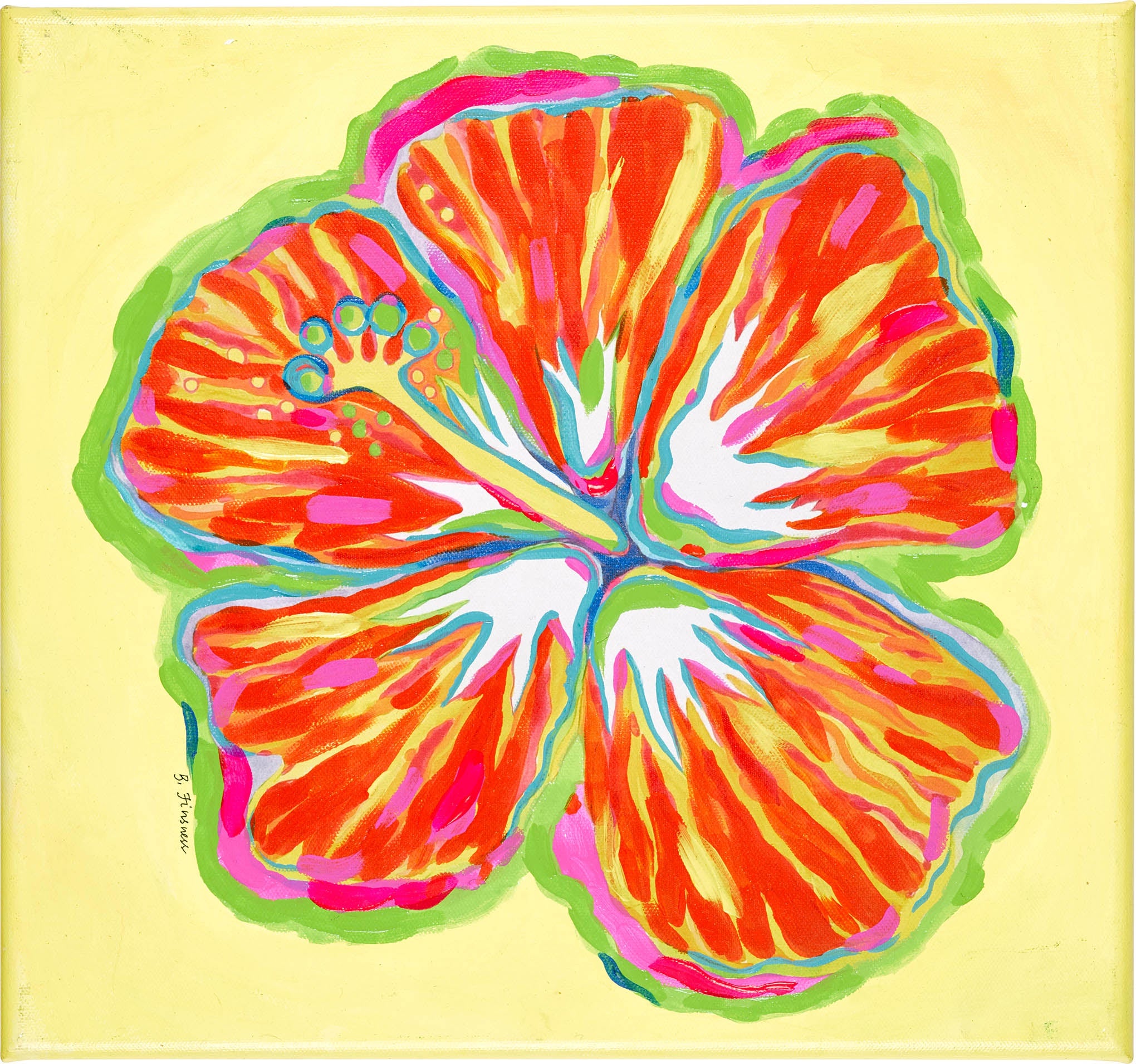 Hibiscus Print - Orange on Yellow