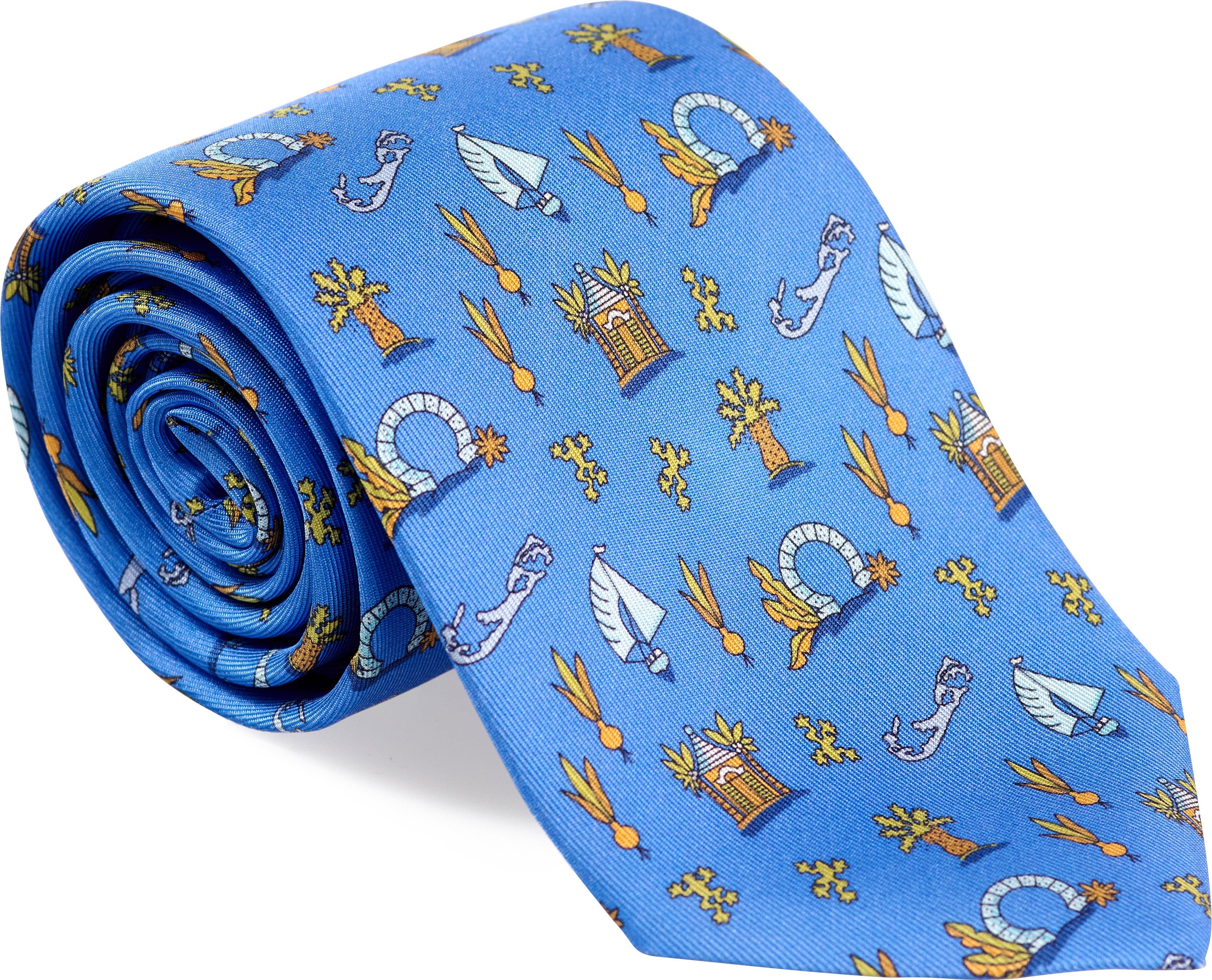 My silk ties and scarves are silk screened in Florence Italy, each hand rolled and sewn there. From 7 to 12 screens are used in this printing method, rivaling in design, fabric and construction the most elegant silks produced in Italy or France.