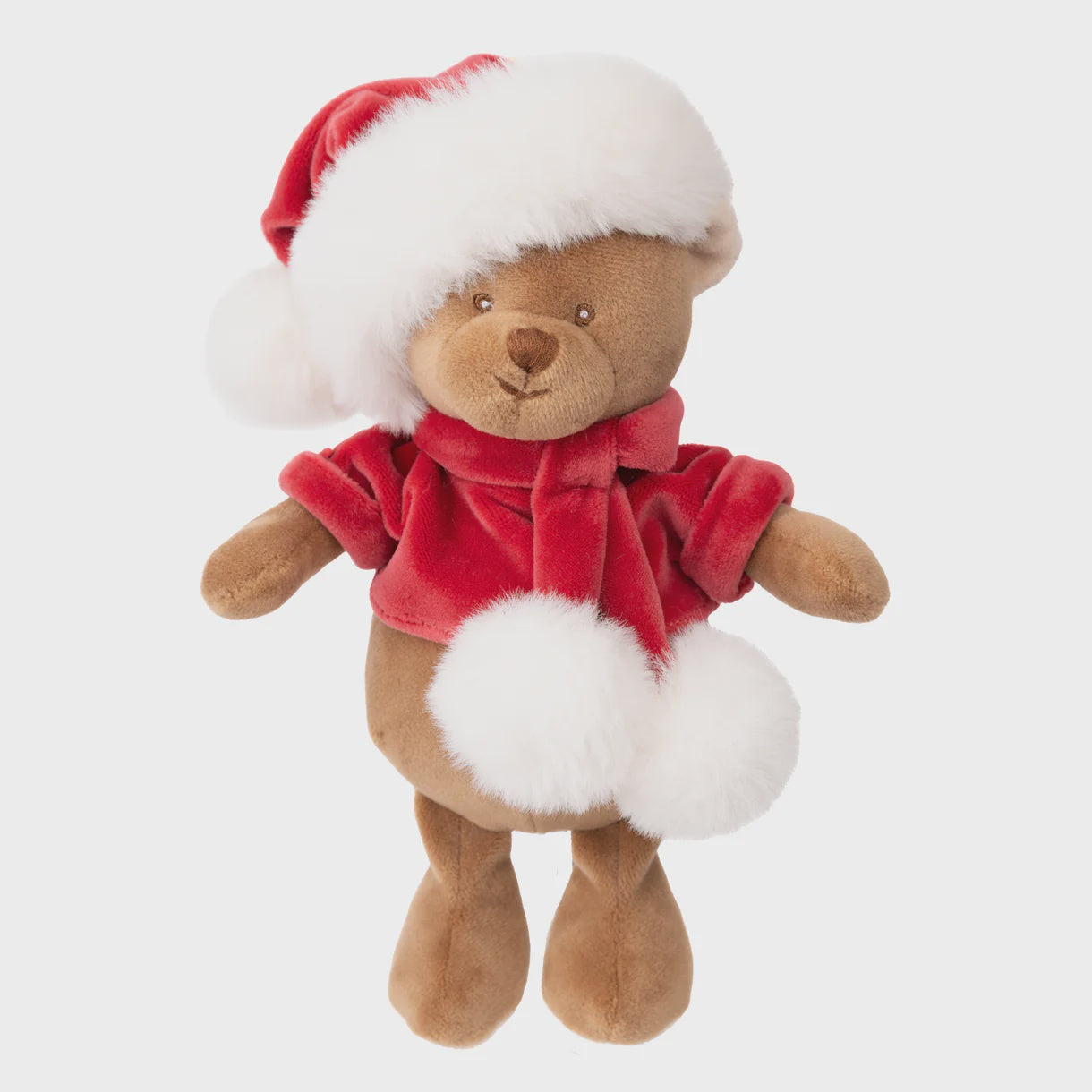 Meet Baby Santa, the lovable light brown bear decked out in a festive red sweater, cheerful Santa hat, and a cozy scarf! With his warm smile and huggable body, Baby Santa is the ultimate companion for spreading holiday cheer. Perfect for cuddling up during winter nights or joining in on Christmas festivities, this charming bear is ready for all the magic the season brings.